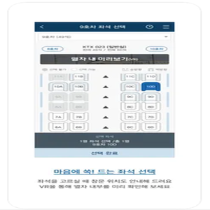 - 원하는 열차와 좌석 선택