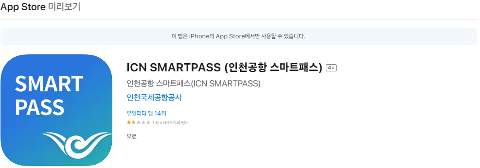 - 앱 스토어에서 "ICN SMARTPASS" 앱을 다운로드하고 설치합니다.
